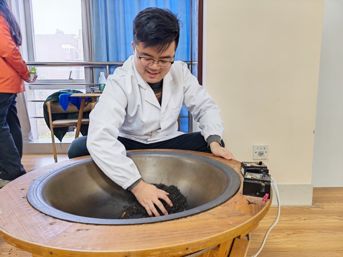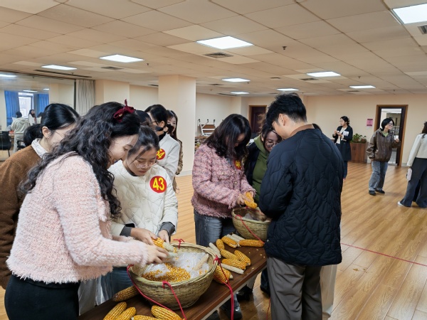 在劳动体验环节,教职工或挑起沉甸甸的箩筐,往返短程路线,或单手剥或两个玉米棒对搓,将玉米粒拨至筐内,在看似简单的农事中体会到了农民的辛劳,感受到粮食来之不易。在产品品鉴环节,由乡村振兴学院茶学专业教师现场展示手工炒茶和泡茶技艺,大家一边品鉴茶水,一边聆听讲解,满溢的茶香充满整个活动场地,让大家思绪放松,身心获得片刻的宁静,深刻感受到中国茶文化的独特魅力。特色农产品展示由学院遴选出一批产学研合作单位的特色优质农产品,吸引了教职工驻足品尝、选购。