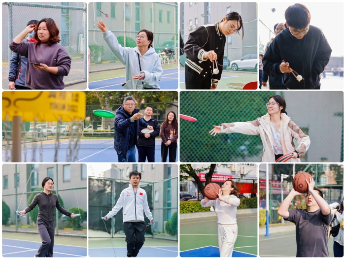 个人趣味项目由投飞镖、夹乒乓球、跳绳、定点投篮和飞盘投掷5个项目组成,大家或屏息凝神瞄准靶心,或小心翼翼夹起小球,或轻快跳跃舞动跳绳,或专注瞄框精准投篮,或紧盯落点灵活掷盘。活动现场轻松愉快,老师们释放了压力,充分感受到运动带来的无限乐趣。