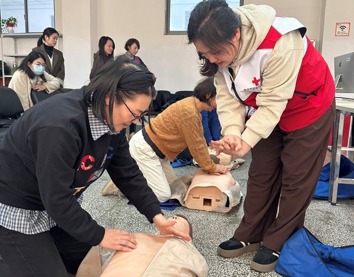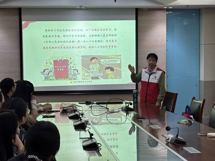 为普及急救知识,进一步提升教职工应对突发状况的自救与互救能力,2025年10月,由校工会主办,信息工程学院分工会、设计学院分工会协办的教职工急救技能培训分别在应天校区、定淮门东校区开展。培训特邀南京市鼓楼区红十字会专业培训师担任主讲,两个校区近40名教职工参加培训。