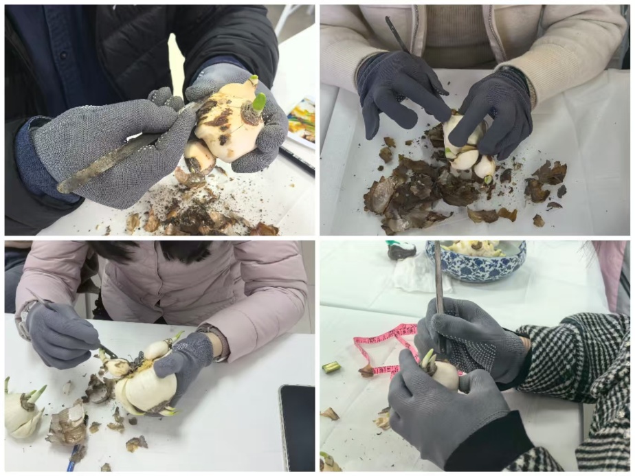 活动伊始,丁老师从基础理论入手,系统地讲解了水仙花的基本知识、花球的选择标准、雕刻原理与结构,以及雕刻的基本流程,为后续的实践操作奠定了坚实的理论基础。