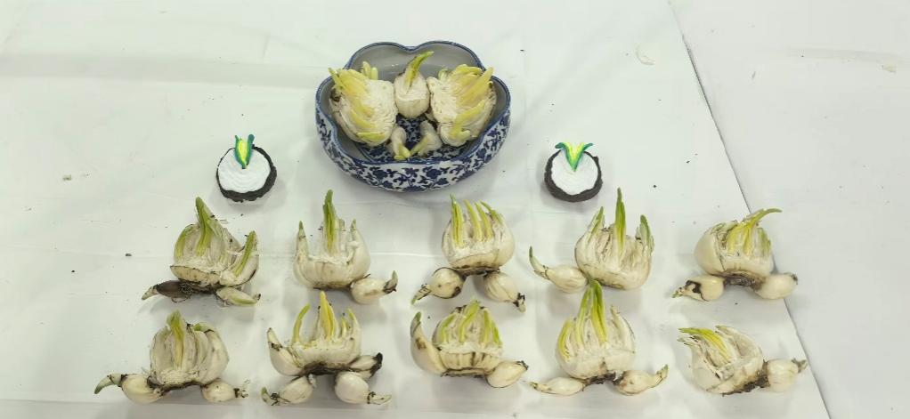 活动最后,丁老师对老师们的作品进行了专业评审,评选出本次水仙花雕刻活动的前三名“雕刻小达人”。完成雕刻的水仙花球将进入下一阶段的养护过程,包括1-2天的浸泡清洗,以及后续的保护切面、定期换水和充分日照等操作。预计40天后,这些经过精心雕刻的水仙花将绽放出优雅的花朵。