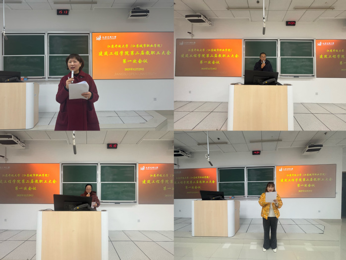 2025年12月29日,建筑工程学院第二届教职工大会第一次会议在应天校区教学楼召开,学院全体教职工参加了会议,会议由党总支书记袁桂霞主持。本次大会是在学校党委行政的正确领导下,在学院党总支的全面指导下,于“十四五”收官之年,全院上下深入学习贯彻习近平新时代中国特色社会主义思想、党的二十大精神和党的二十届二中、三中、四中全会精神,全面落实学校党代会、教代会精神,学院工作向上突破的形势下召开的一次重要会议,更是学院全体教职工民主政治生活中的一件大事。