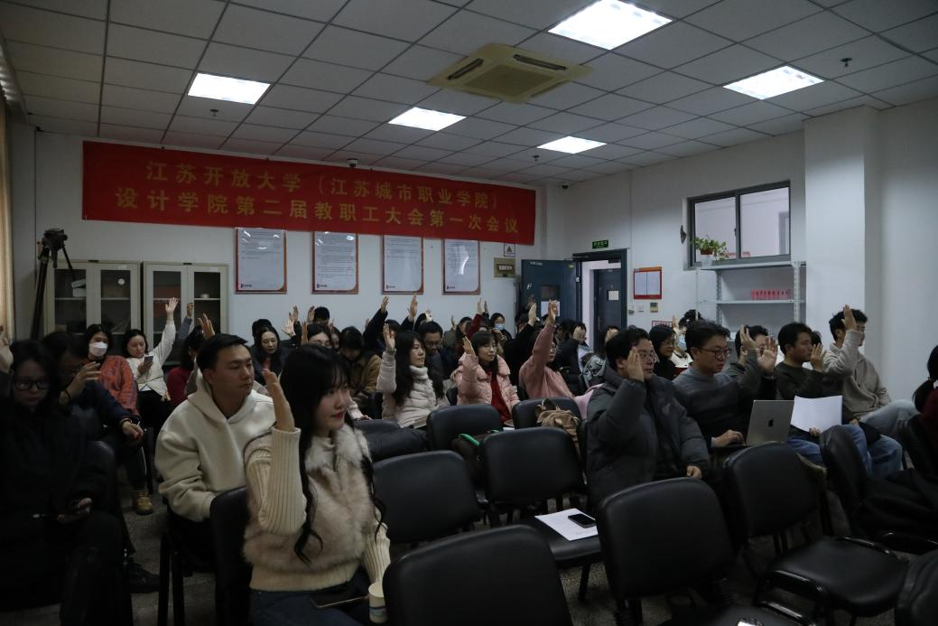 会议伊始,预备会议有序推进,筹备工作领导小组就大会筹备情况向全体参会人员作说明,为大会顺利召开奠定坚实基础。随着庄严的国歌声奏响,正式大会拉开帷幕。院长谢冬冰代表学院作《发扬成绩,科学谋篇,同心开创设计学院“十五五”发展新局面》工作报告。报告循着“回顾过往、剖析短板、部署未来”的清晰脉络,全景式展现了2025年的奋进足迹。在党的建设引领下,学院深入落实党政共同负责制,不仅超额完成年度各项任务,更圆满实现“十四五”规划主要目标;学科专业布局持续完善,成功打通“中职-高职-本科”学历提升通道,形成覆盖传统工艺、数字媒体、艺术设计的完整专业体系;数智教学改革走深走实,通过数字人教学培训、AI艺术创作融入课堂等创新举措,师生数智艺术素养和创新实践能力显著提升;人才培养成效亮眼,2025届高职毕业生转本升学率达25.43%、就业率达93%以上,用扎实的成绩彰显育人质量;科研工作多点突破,斩获教育部人文社科一般项目、江苏艺术基金项目等多项高级别课题,高水平论文产出丰硕;社会教育品牌效应凸显,全年服务各类群体750人次,培训总收入近60万元;招生工作再攀新高,高职新生报到率达98%,开放招生规模实现翻倍增长。报告同时客观剖析了“十四五”期间在师资队伍结构、科研成果转化等方面的短板,并对2026年及“十五五”期间的工作作出系统部署,从优化专业布局、提升教学质量、推进有组织科研、深化产教融合等十个方面,勾勒出清晰具体的发展蓝图。